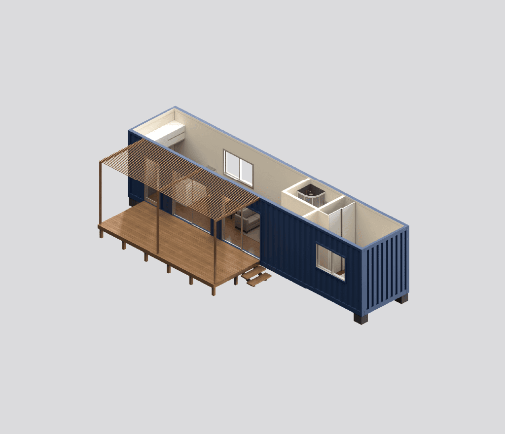 Vivienda de 29.7m2 construida a partir de 1 contenedor de 40 pies HC (12.18m x 2.44m x 2.90m)